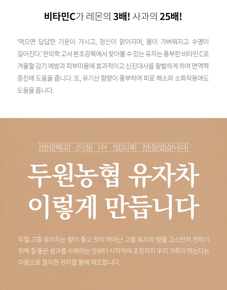 | 생산자(수입자) | 두원농협유자가공사업소 | 원산지 | 전라남도 고흥 |