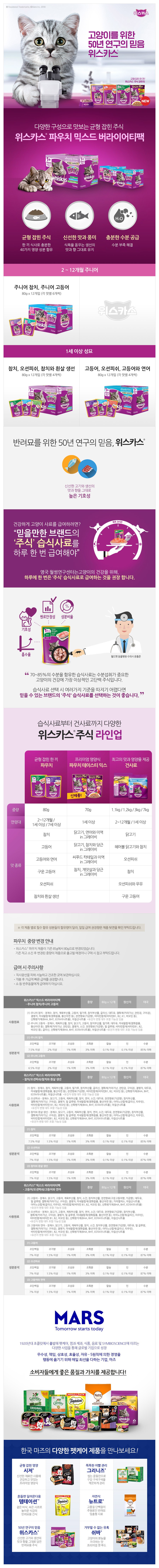 | 품명 및 모델명 | 위스카스 파우치 믹스드 주니어 참치, 주니어 고등어 80g | 인증사항 | 해당 없음 |