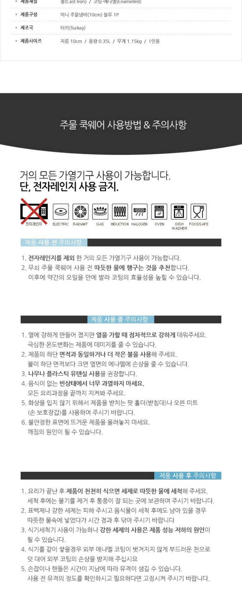 - 인덕션 가능여부: 인덕션 사용가능