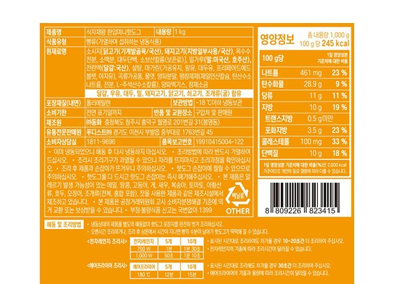 2. 조리 후 제품이 차가울 경우 20초간 더 조리해 주세요.