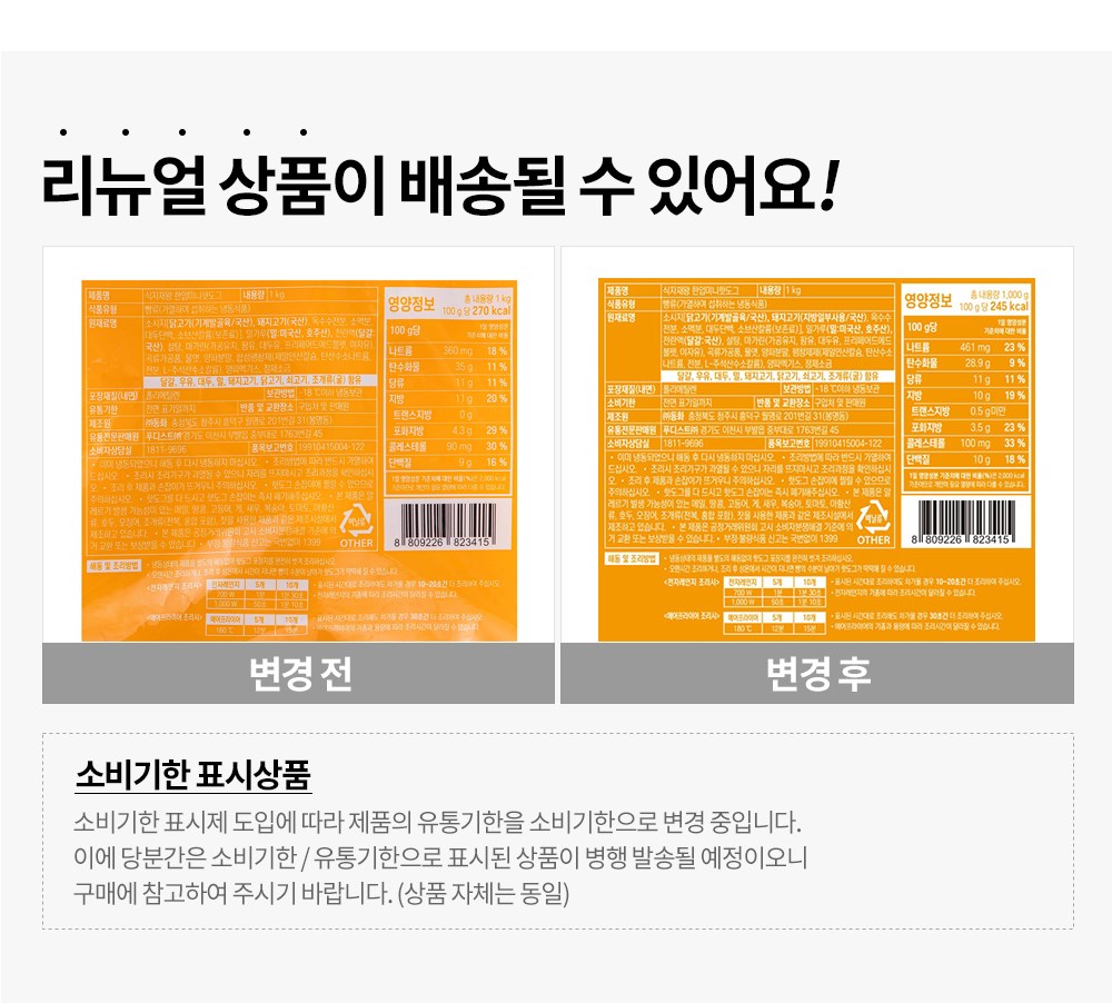 | 포장단위별 내용물의 용량(중량), 수량 | 1kg x 3개,1개 | 원재료명 및 함량 | 컨텐츠참조 |