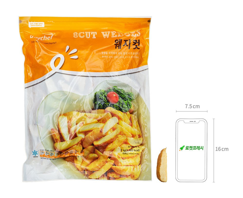 겉은 바삭하고 속은 부드러운 데이쉐프 웨지컷이에요. 신선한 감자를 사용해 고소한 풍미가 좋아요. 도톰하고 포슬포슬한 식감이 입안을 포근하게 감싸준답니다. 프라이팬 등으로 간편하게 조리하여 아이들 간식이나 어른들 안주로 활용해보세요. 케첩이나 머스터드소스 등 다양한 소스를 곁들이면 더욱 풍성하게 즐길 수 있어요.
