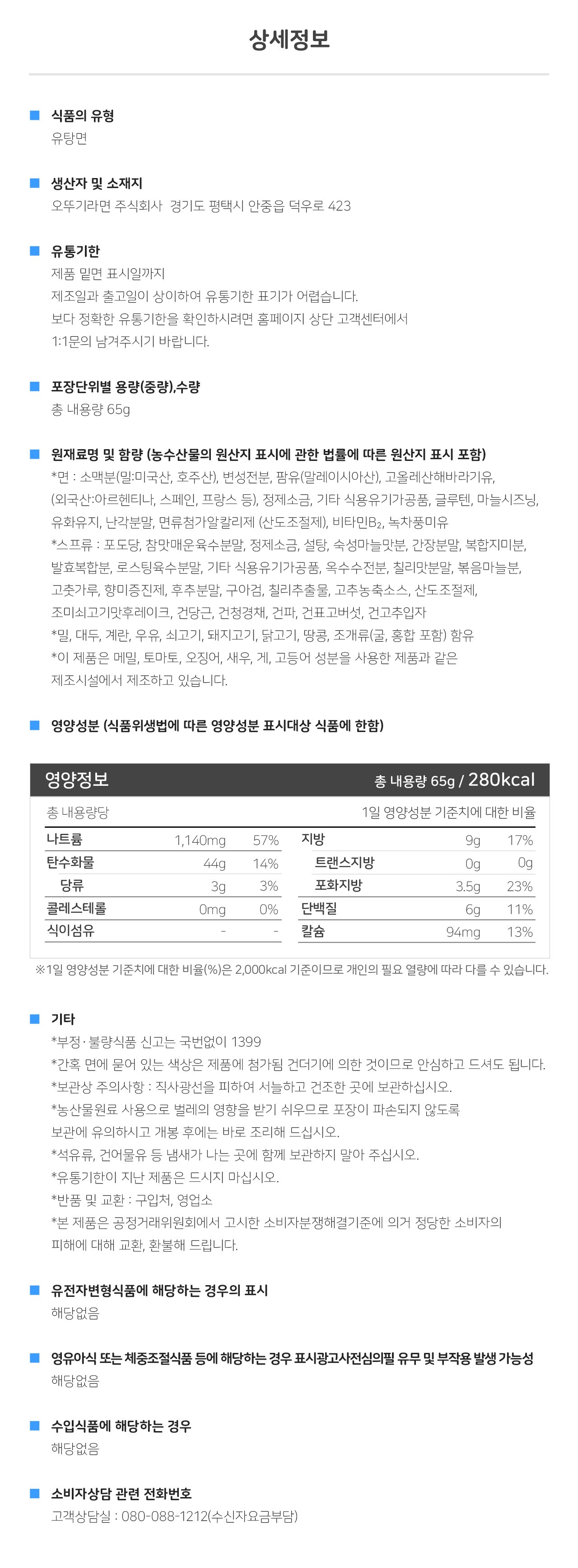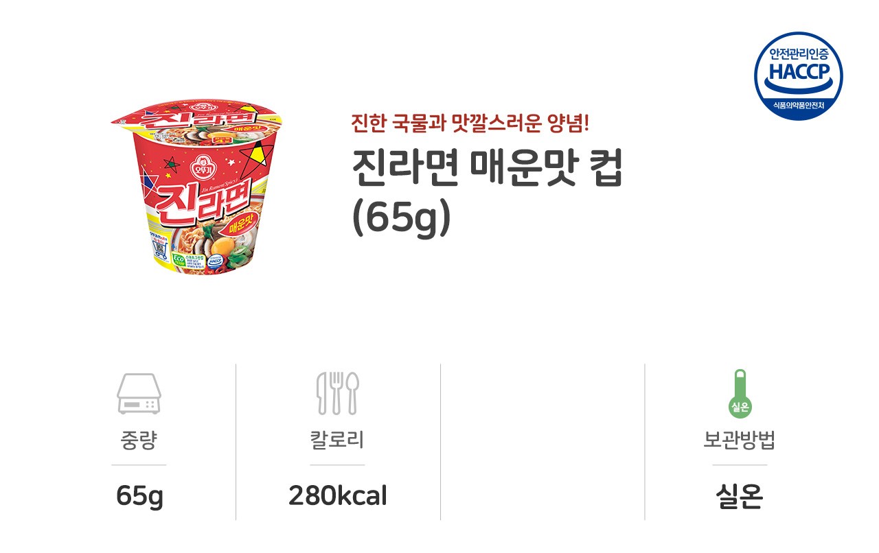| 제품명 | 진라면 매운맛 | 식품의 유형 | 라면류 |