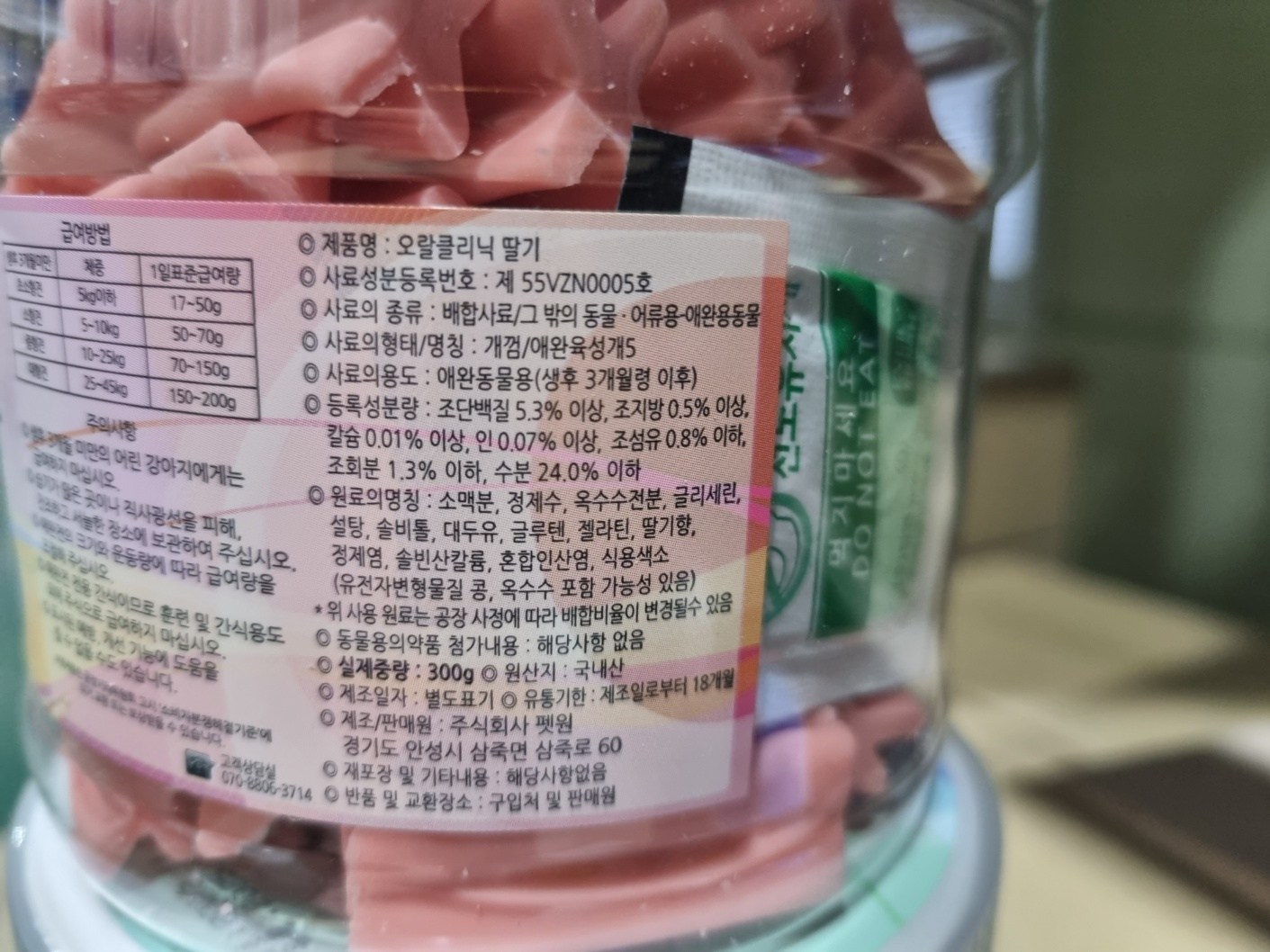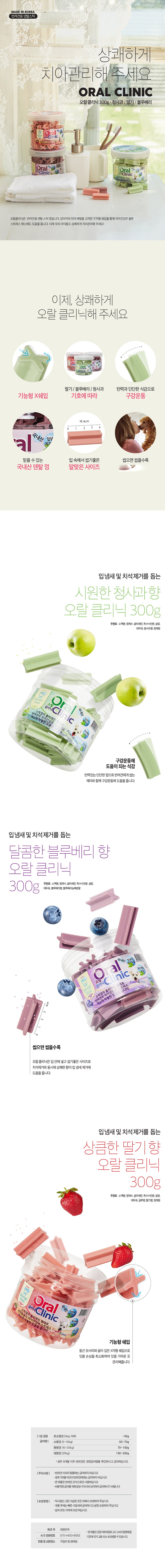 | 품명 및 모델명 | 오랄클리닉 치석제거용 껌 딸기 300g | 인증사항 | 해당없음 |
