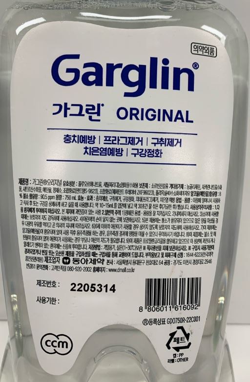 | 품명 및 모델명 | 가그린 오리지널 | 인증/허가 사항 | 의약외품 |