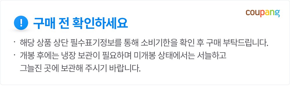 | 교환/반품 신청 기준일 | ㆍ단순변심에 의한 로켓배송 상품의 교환/반품은 제품 수령 후 30일 이내까지, 교환/반품 제한사항에 해당하지 않는 경우에만 가능 ※ 로켓프레시 상품의 경우 배송시작 후에는 취소가 불가하며, 배송완료 후 반품을 진행하실 수 있습니다. 단, 신선/냉장/냉동 상품의 단순변심의 경우 재판매가 불가한 상품의 특성 상 단순변심에 의한 반품이 제한됩니다. ㆍ상품의 내용이 표시·광고의 내용과 다른 경우에는 상품을 수령한 날부터 3개월 이내, 그 사실을 안 날 또는 알 수 있었던 날부터 |