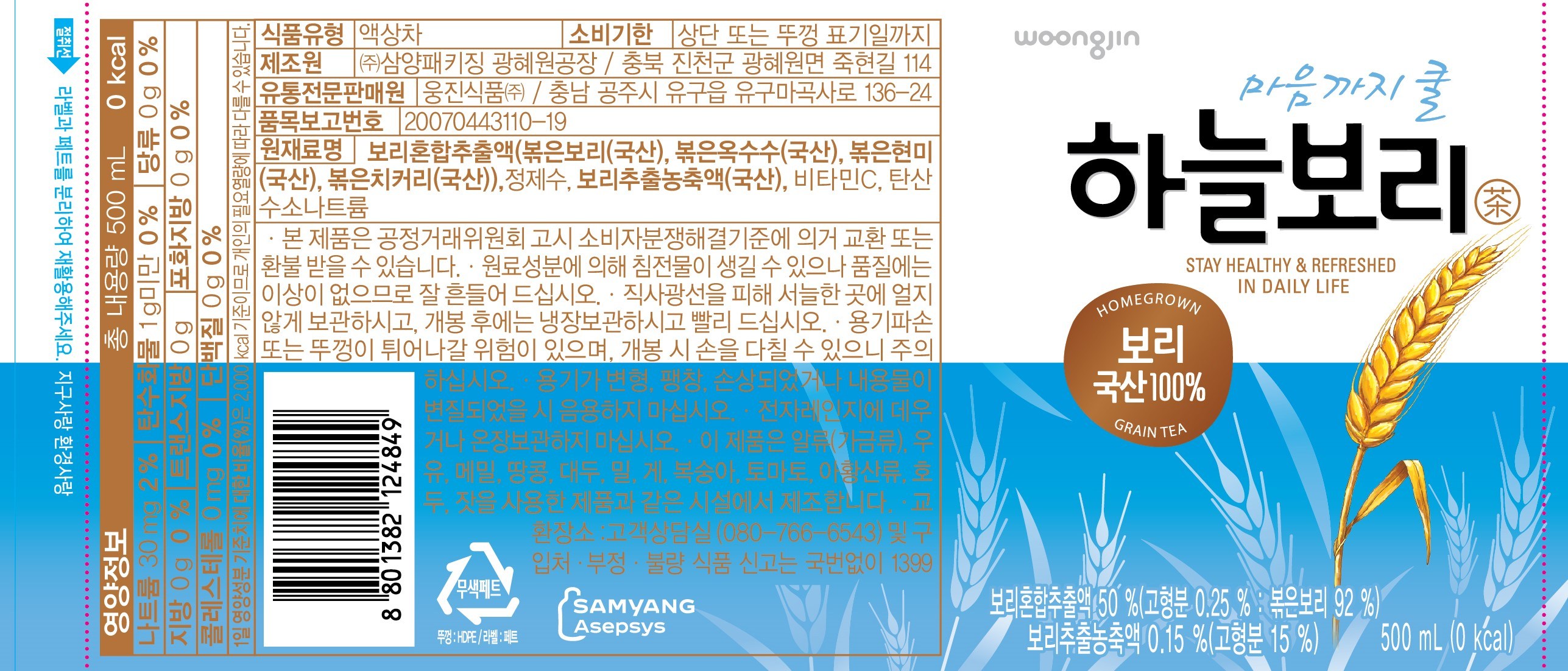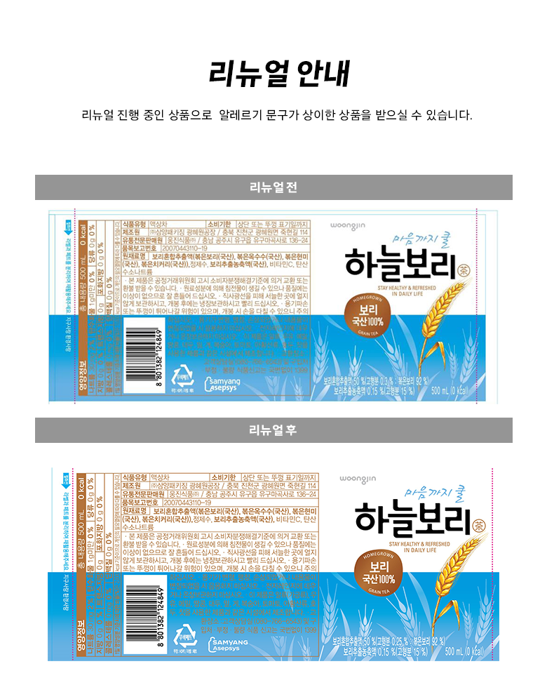 | 제품명 | 하늘보리 | 식품의 유형 | 컨텐츠 참조 |