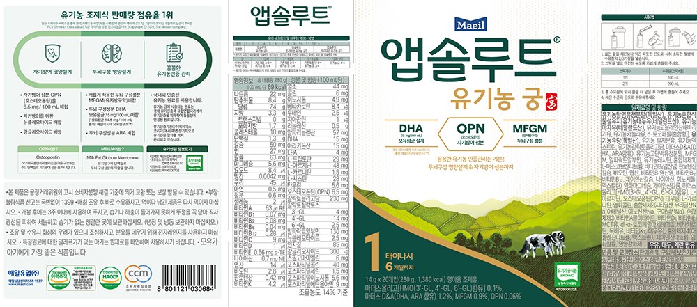 | 제품명 | 앱솔루트 궁1 | 식품의 유형 | 영아용 조제유 |