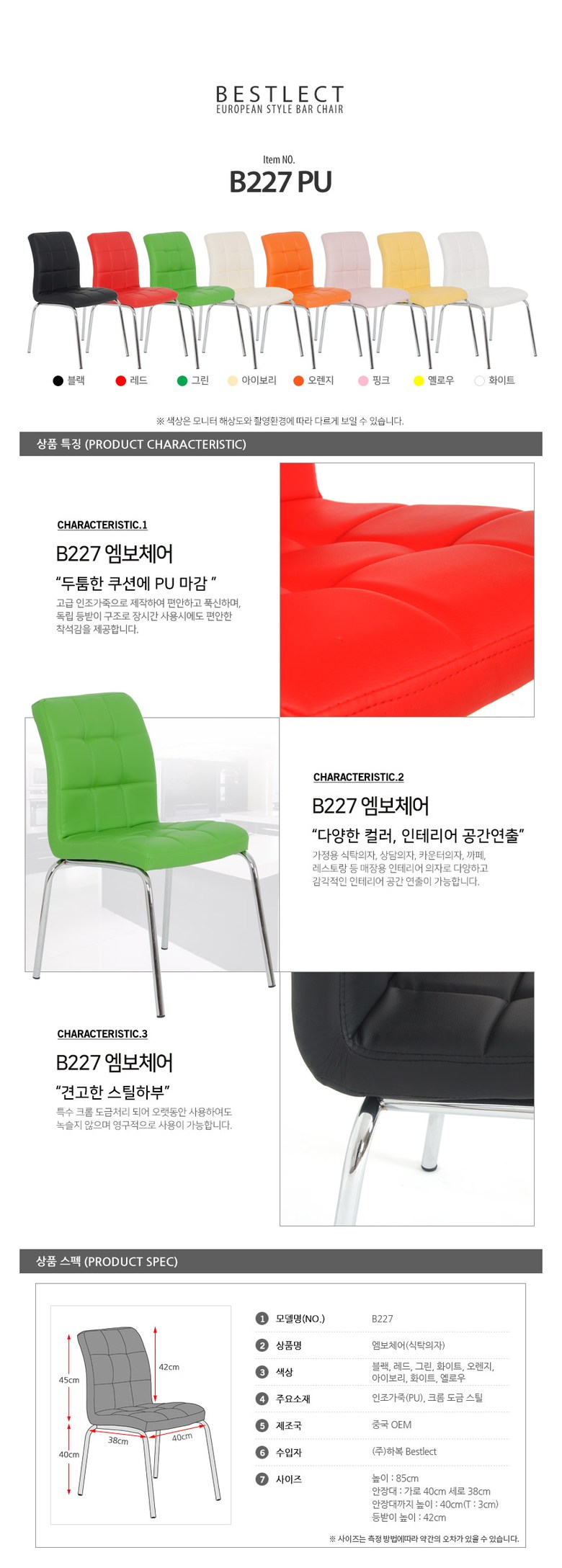 | 품명 | B227 식탁 인테리어의자 | KC 인증정보 | kc인증 |