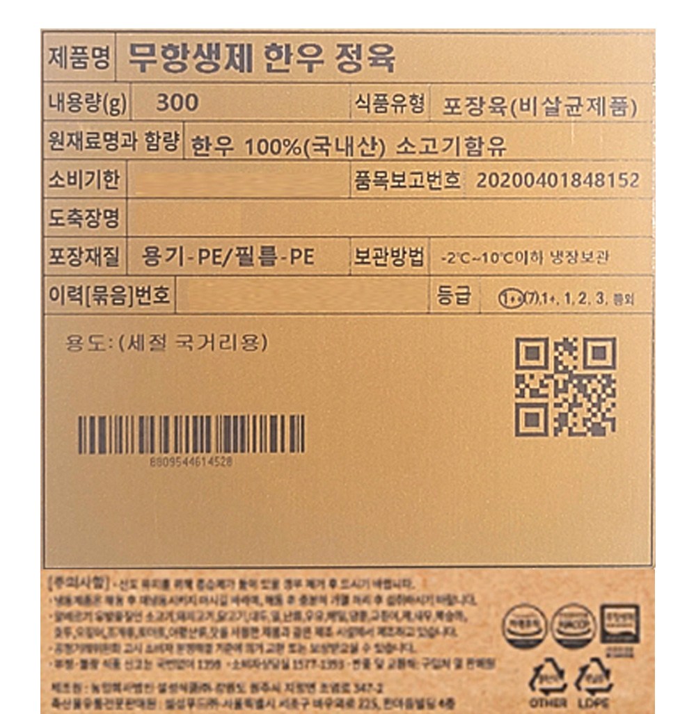| 소비기한 또는 품질유지기한 | 소비기한(또는 유통기한) : 2026년 01월 28일 이거나 그 이후인 상품 | 세부 품목군별 표시사항 | 축산물 등급표시 : 1++(7)등급 / 이력번호 표시유무 : 이력번호 표시제품임 |