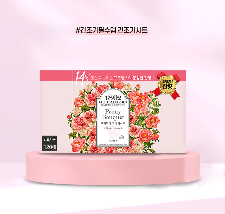 | 품목 및 제품명 | 섬유유연제/르샤트라 드라이시트 피오니부케 | 용도(표백제의 경우 계열을 함께표시) 및 제형 | 섬유용/티슈형 |