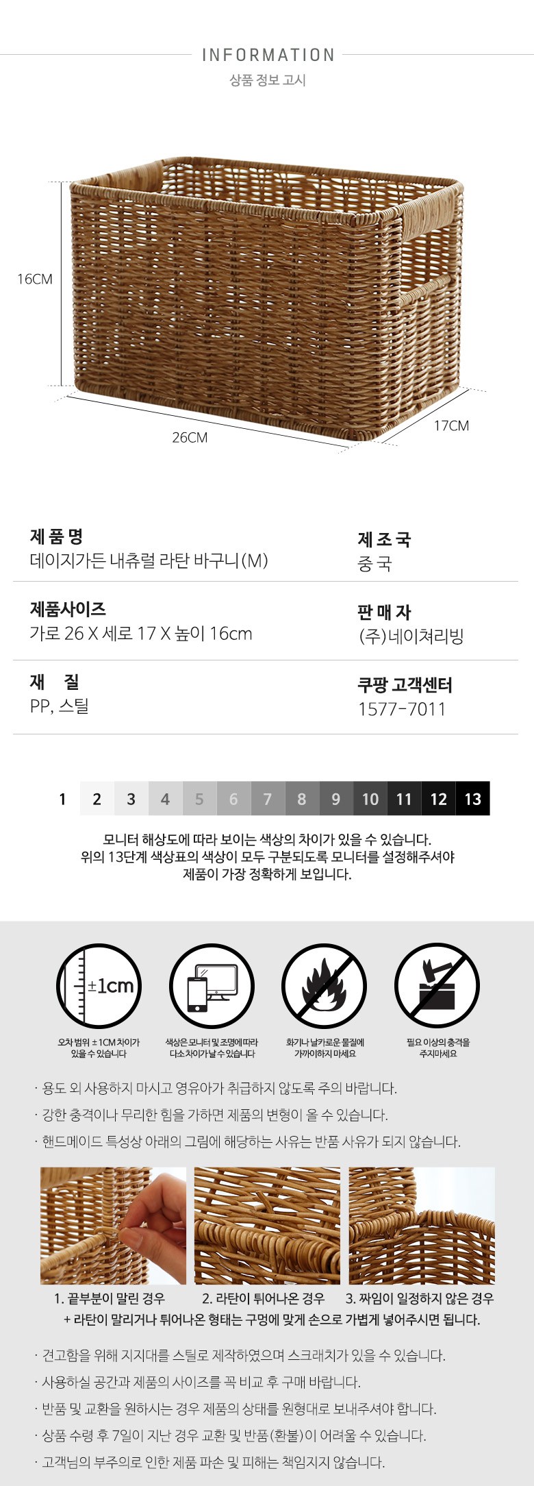 | 품명 및 모델명 | 데이지가든 내츄럴 라탄 바구니(M) | 인증/허가 사항 | 해당없음 |