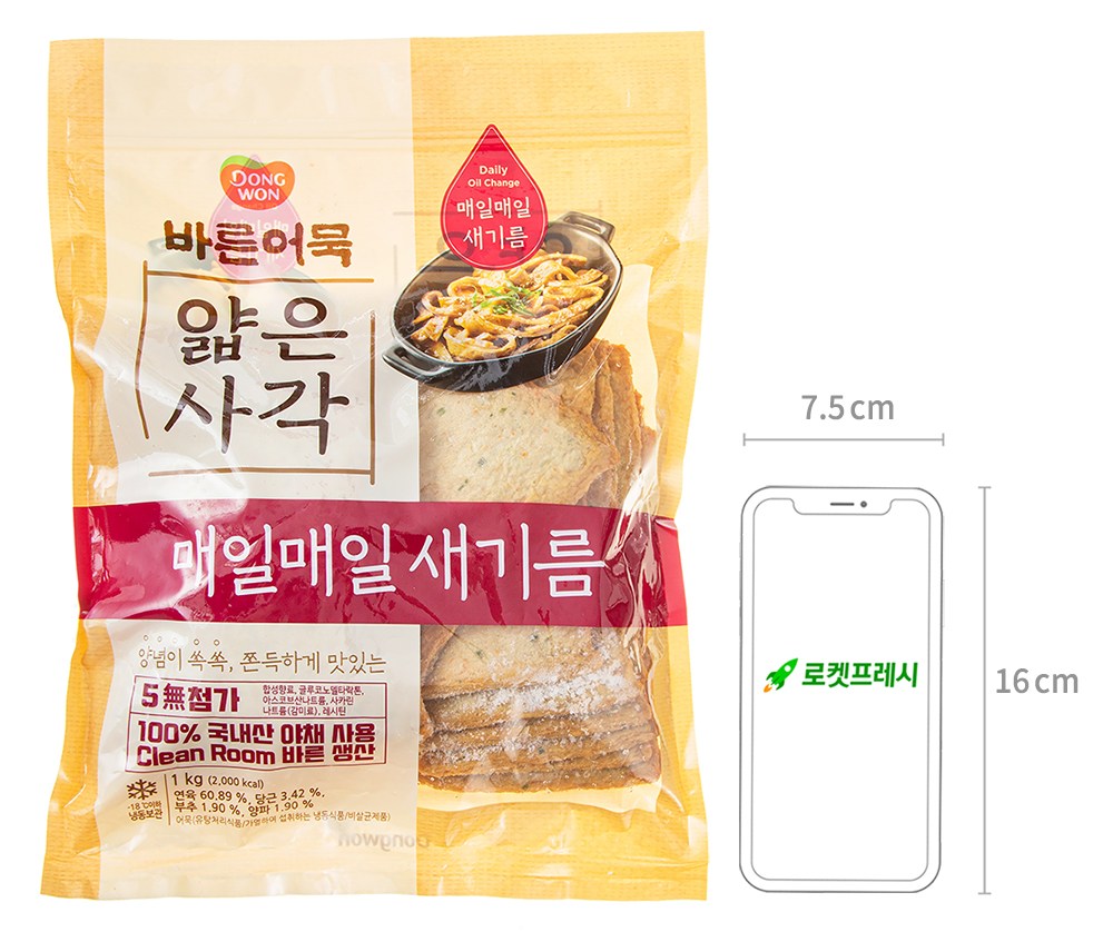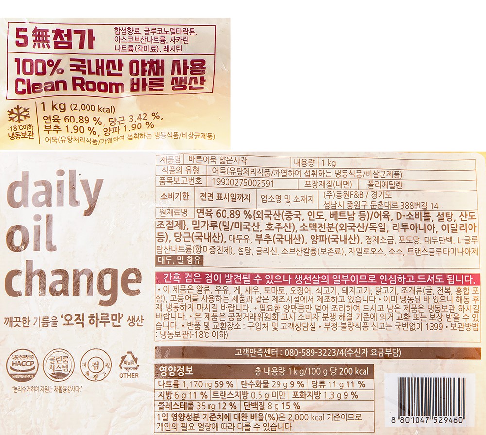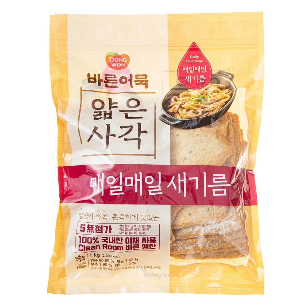 | 제품명 | 바른어묵 얇은사각 | 식품의 유형 | 어묵(유탕처리식품/가열하여 섭취하는 냉동식품/비살균제품) |