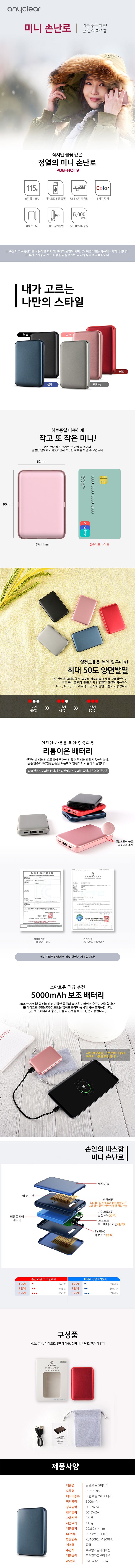 | 품명 및 모델명 | 손난로 보조배터리 PDB-HOT9 | KC 인증정보 | XU100924-19008B, R-R-WY1-HOT9 |