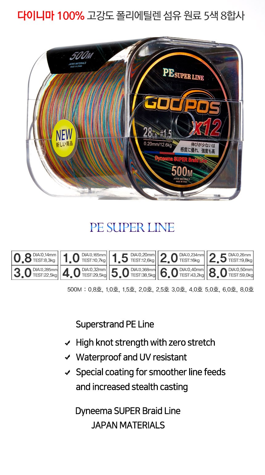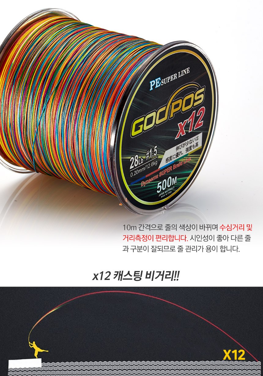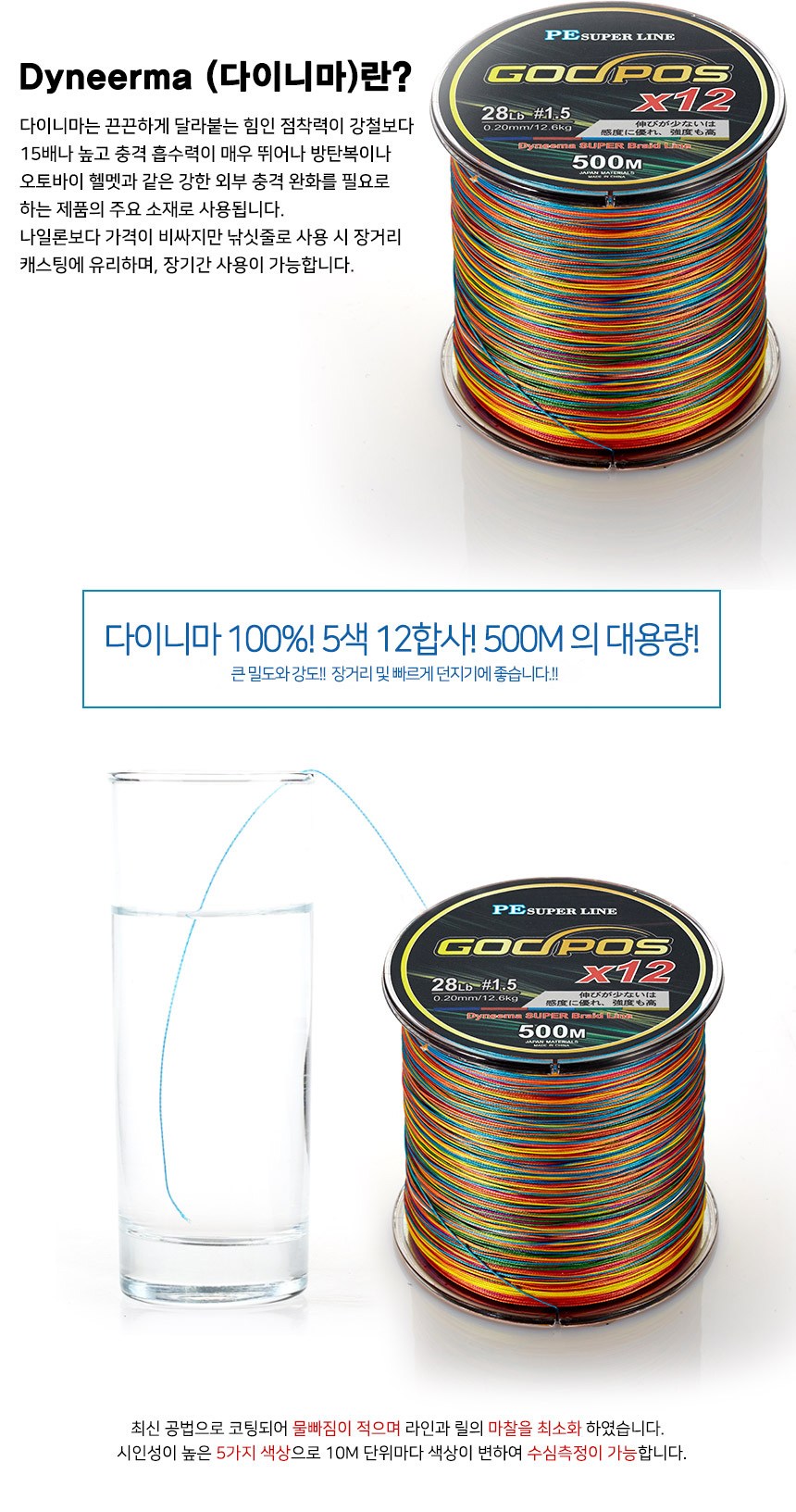 | 품명 및 모델명 | 갓포스 PE 5색 12합사 낚싯줄 500m | 인증/허가 사항 | 해당없음 |