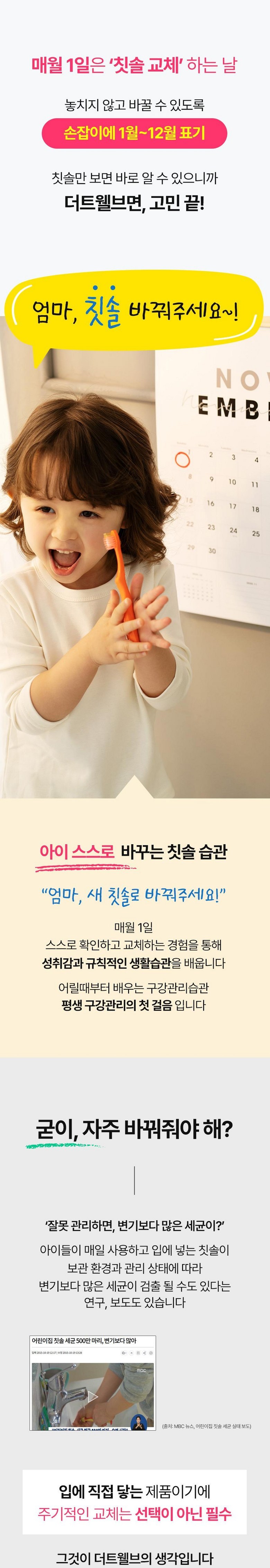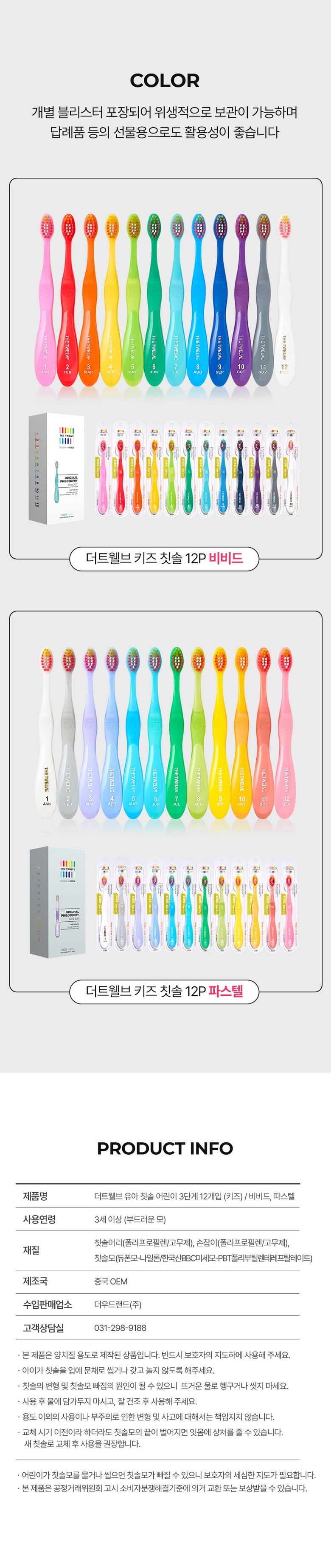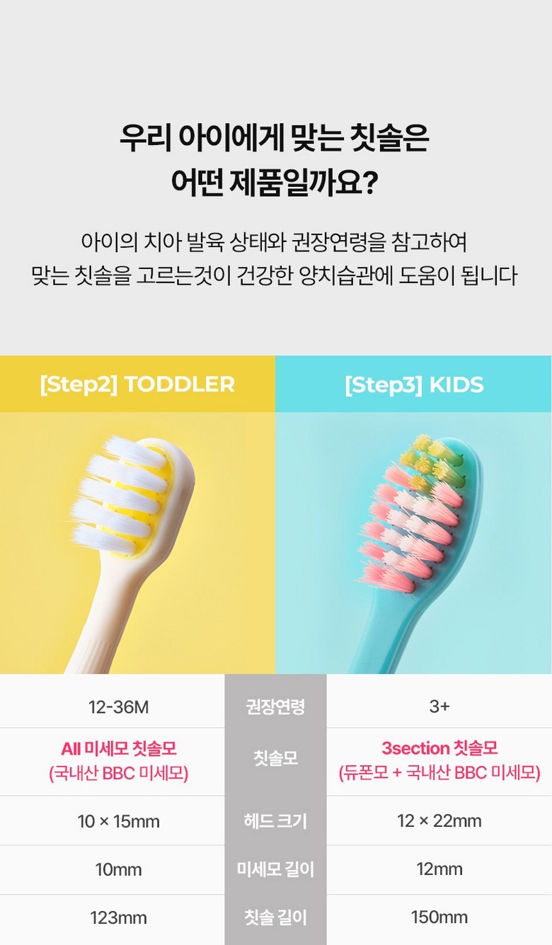 | 품명 및 모델명 | 더트웰브 3단계 항균 키즈 어린이 칫솔 세트 3중모구조 스텝3 | KC 인증정보 | 상품 상세페이지 참조 |
