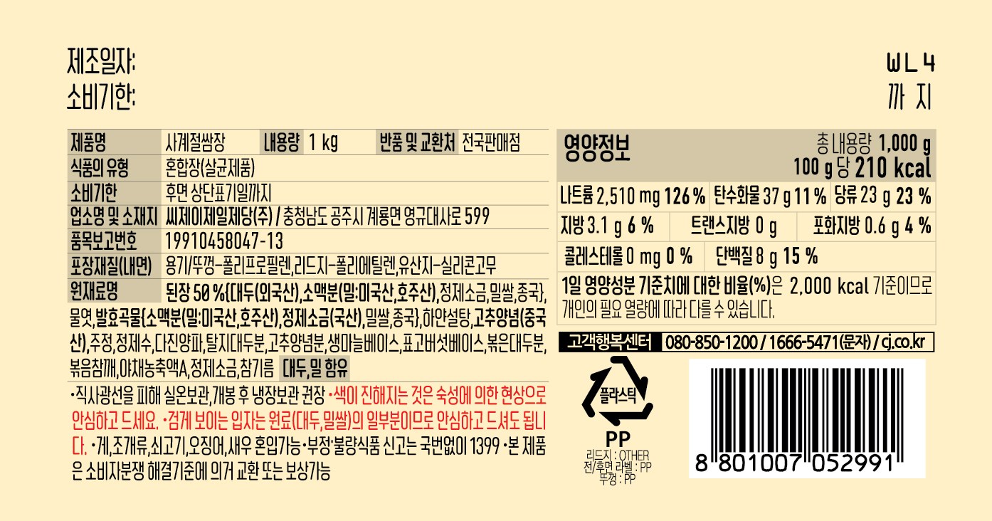 - 비건 여부: ※사계절쌈장1kg※