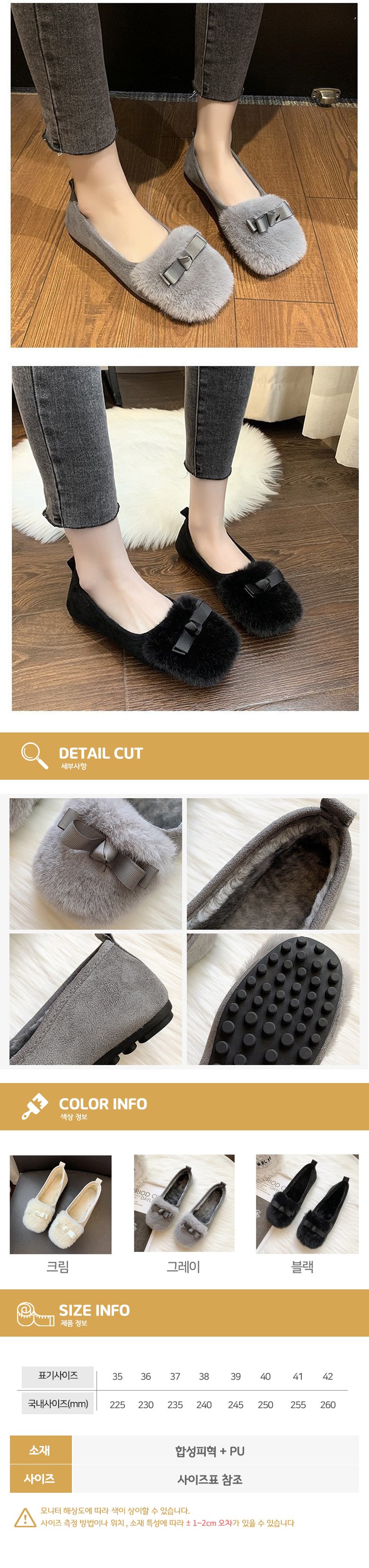 | 제품의 주소재(운동화인 경우에는 겉감,안감을 구분하여 표시) | 상세페이지참조 | 색상 | 상세페이지참조 |