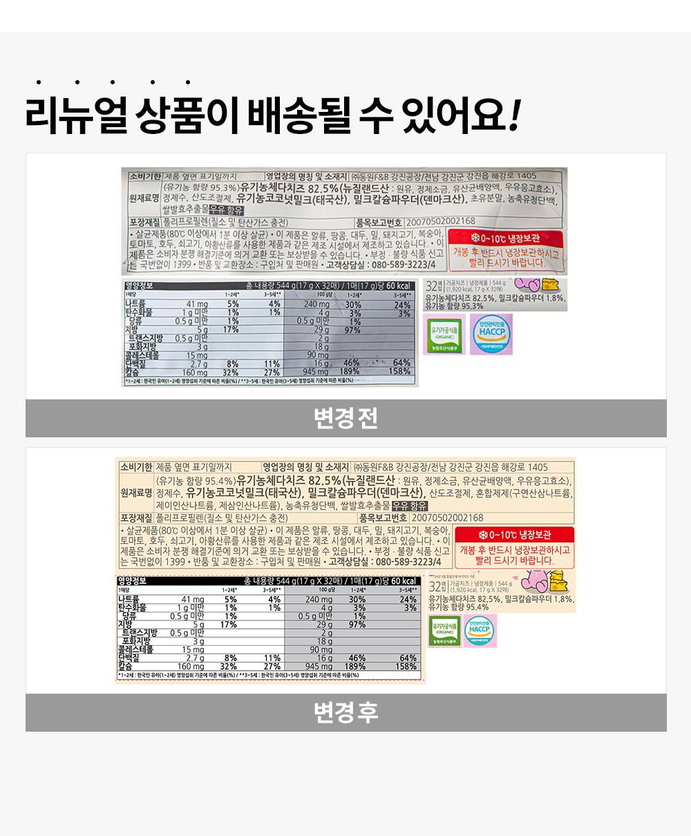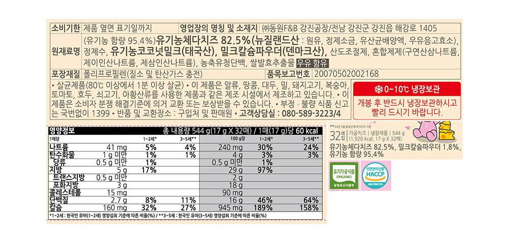 | 제품명 | 자연방목 유기농 짜지않은 아기치즈 2 | 식품의 유형 | 컨텐츠 참조 |