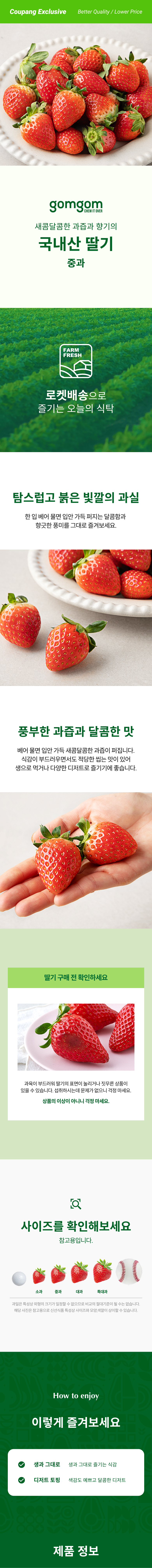 | 품목 또는 명칭 | 국내산 딸기 | 포장단위별 내용물의 용량(중량),수량,크기 | 500g 1팩 |