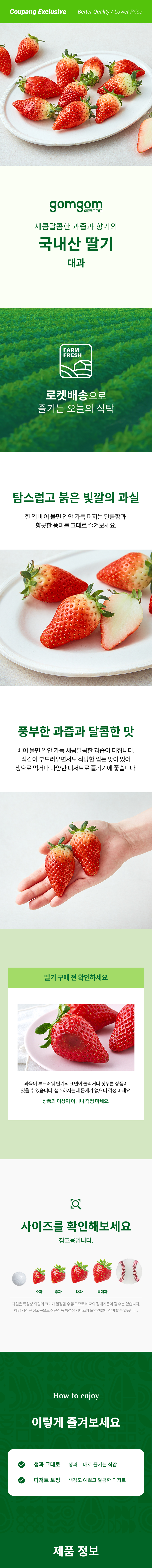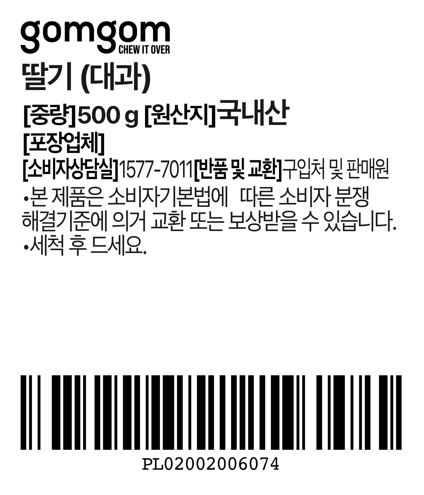 | 품목 또는 명칭 | 곰곰 국내산 딸기 | 포장단위별 내용물의 용량(중량),수량,크기 | 500g, 1팩 |
