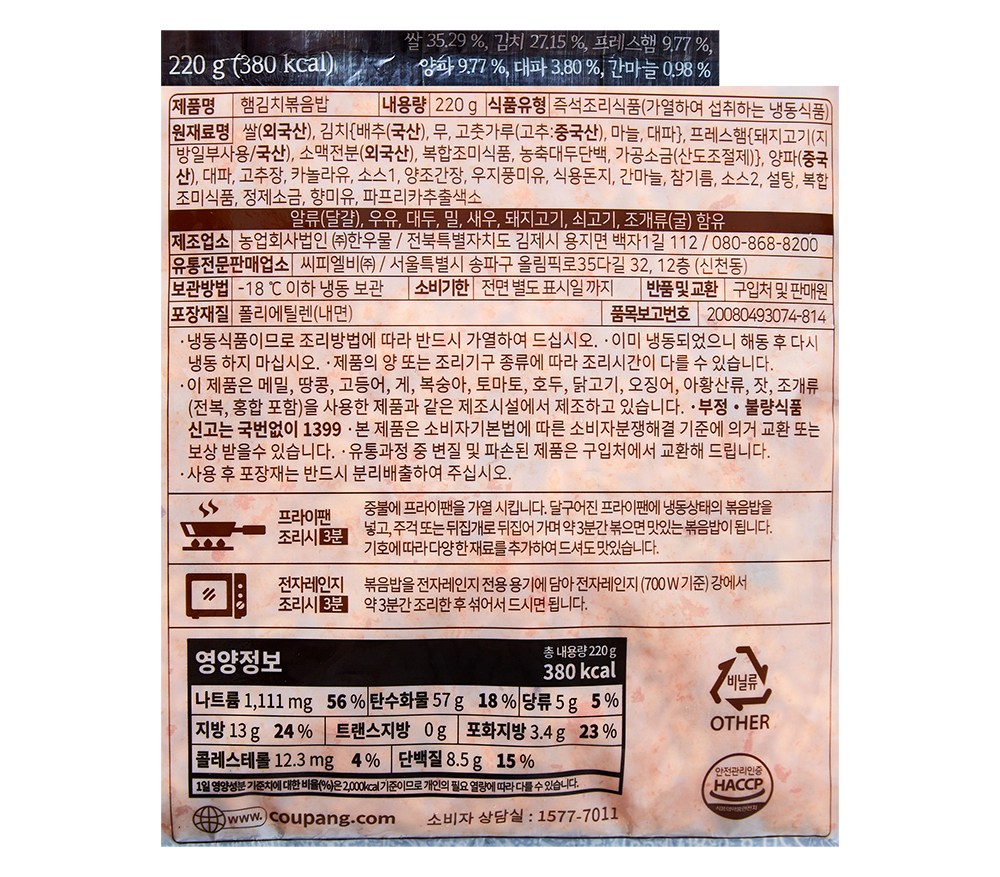 | 포장단위별 내용물의 용량(중량), 수량 | 220g x 18개,1개 | 원재료명 및 함량 | 컨텐츠 참조 |