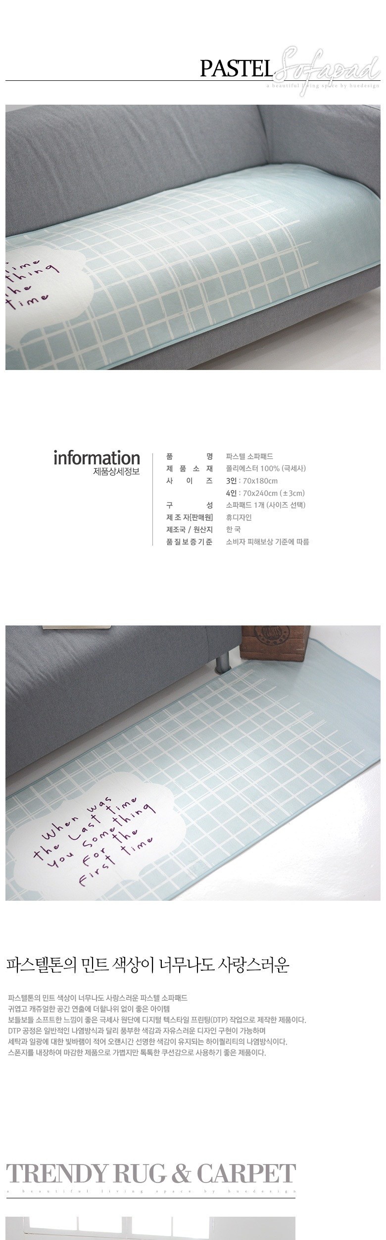 | 치수 | 70cmx180cm | 제품구성 | 소파패드 3인 1장 |
