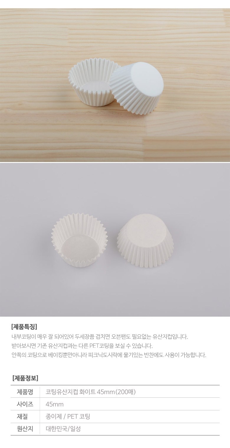 | 품명 및 모델명 | 코팅유산지컵 화이트 45mm | 재질 | 컨텐츠 참조 |