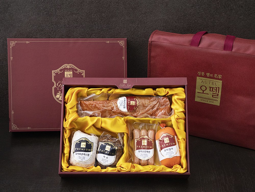 수제햄과 소시지를 담은 오뗄 수재햄 선물세트입니다. 신선한 돼지고기로 만들어 식감이 좋고 고소한 육즙이 살아있는 수제햄이에요. 바베큐 안심햄, 차슈, 화이트 본레스햄, 모타렐라, 부어스트에센 소시지로 풍성하게 구성되어 고마운 마음을 전할 선물로 제격이랍니다.