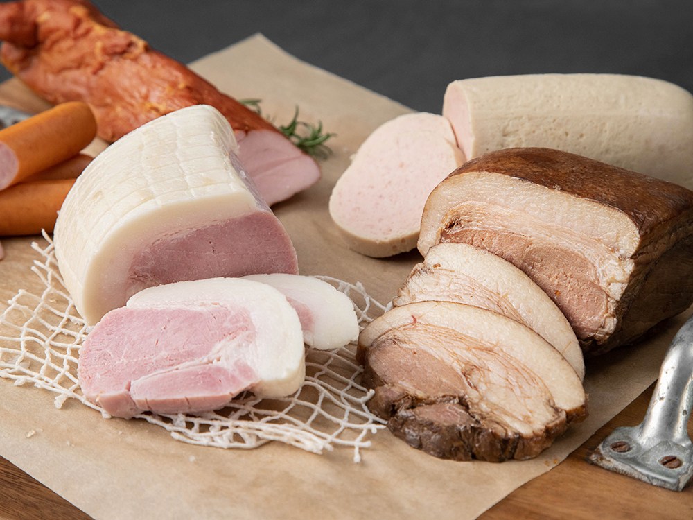 바베큐 안심햄, 차슈, 화이트 본레스햄, 모타델라, 부어스트에센 소시지로 구성되어 있습니다.