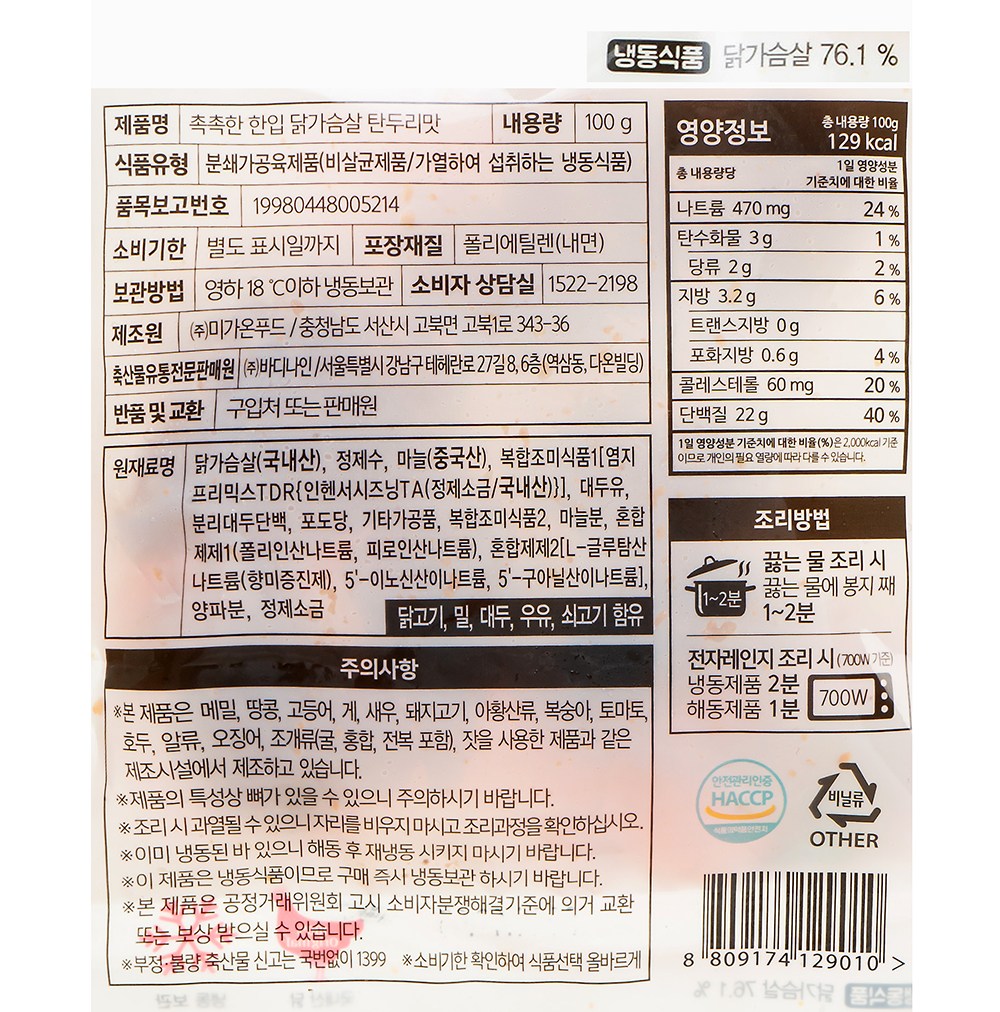 | - 신선하고 부드러운 닭가슴살로 엄선 | |