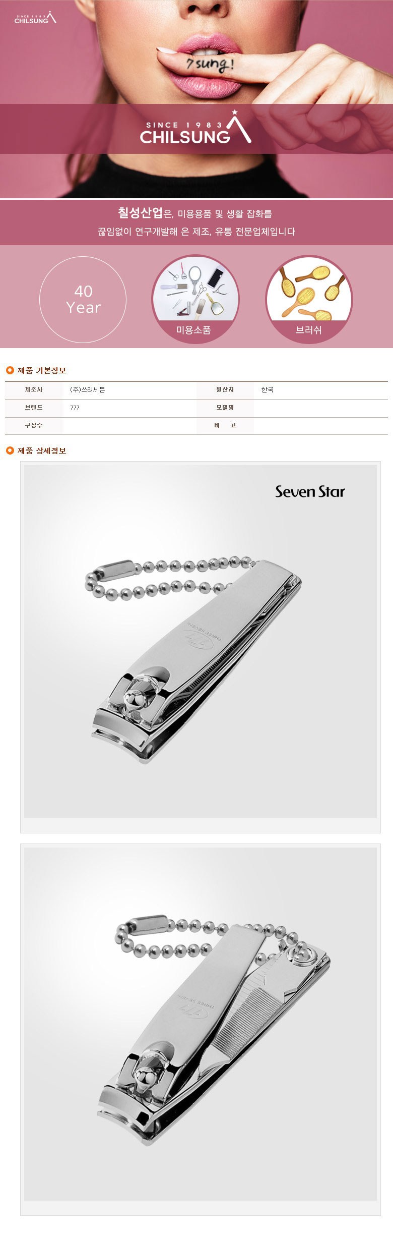 | 제조국(원산지) | 대한민국 | 제조자(수입자) | 쓰리세븐 |