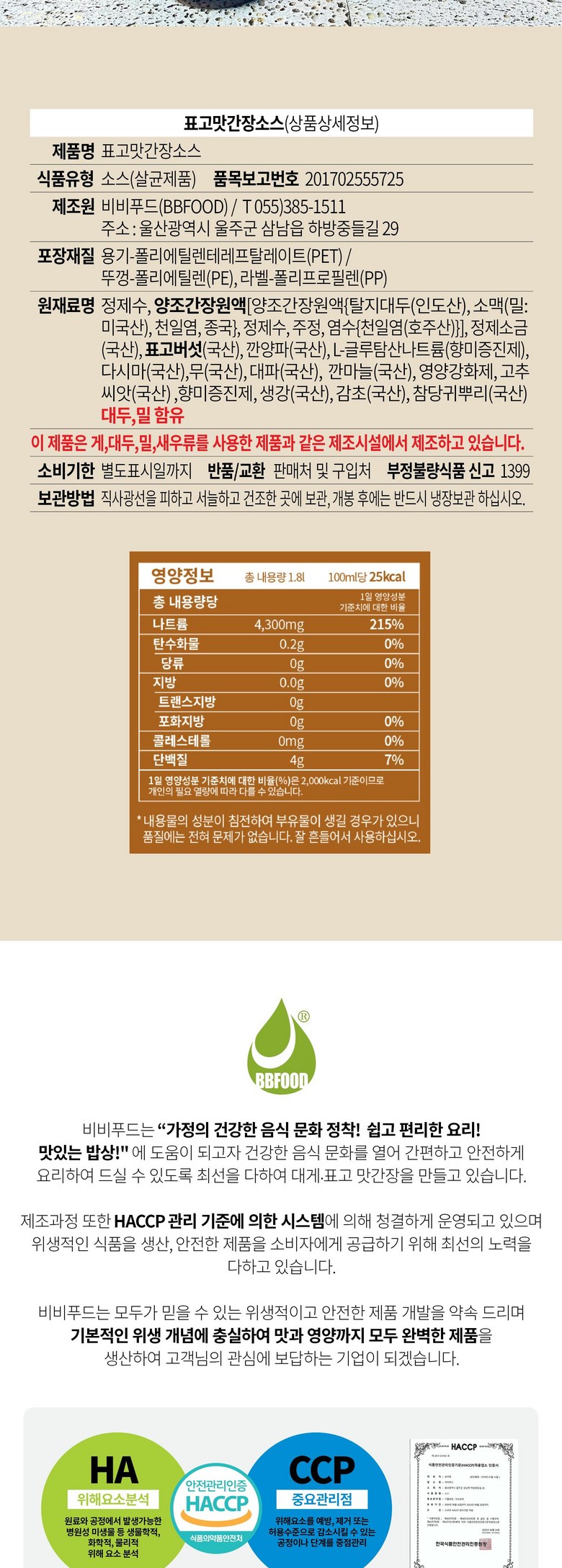 | 제품명 | 표고맛간장소스 | 식품의 유형 | 소스(살균제품) |