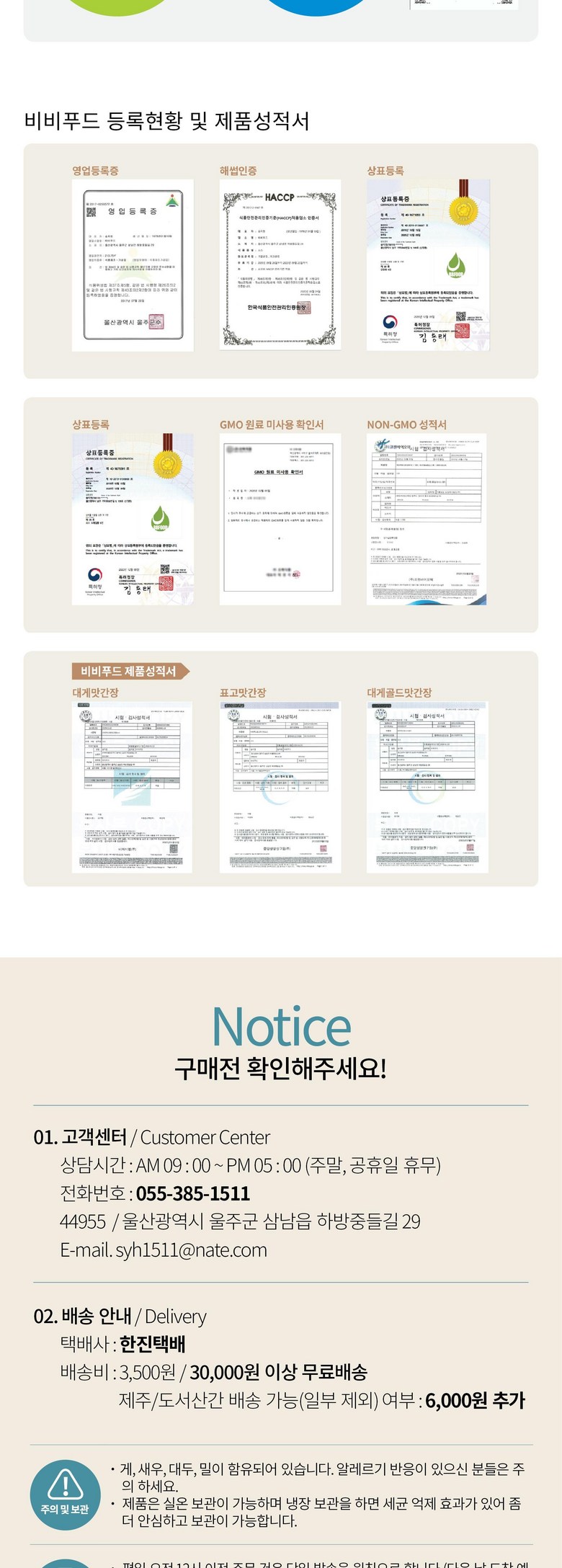 상호/대표자 | 비비푸드 / 송지현 | 사업장 소재지 | 울산광역시 울주군 삼남읍 하방중들길 29 비비푸드 |