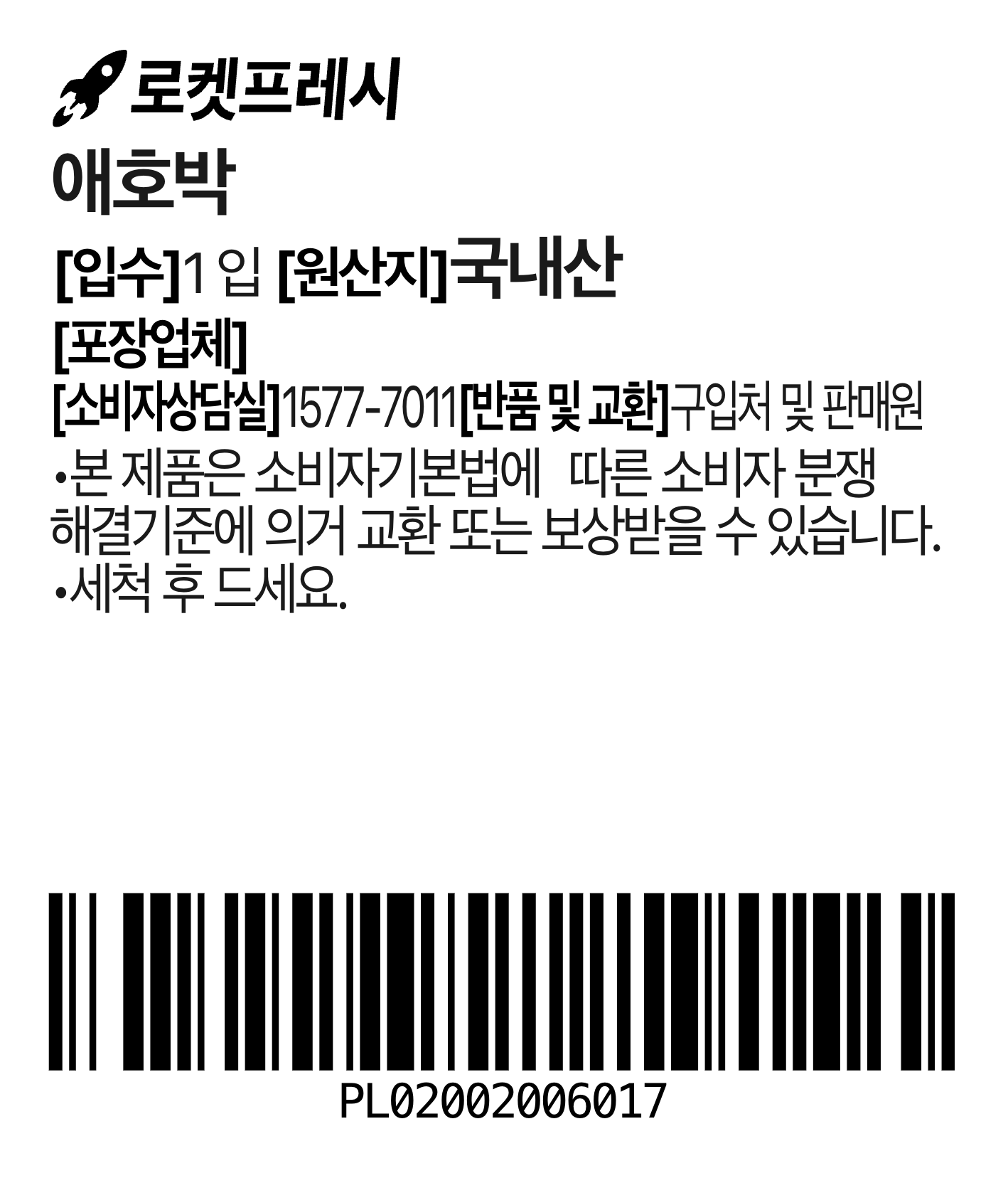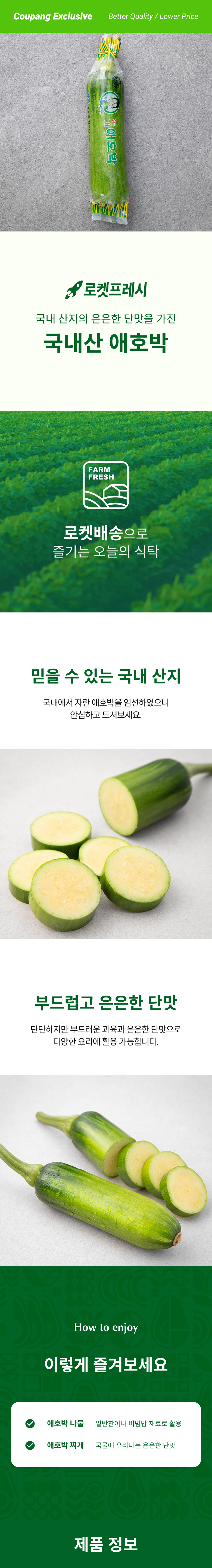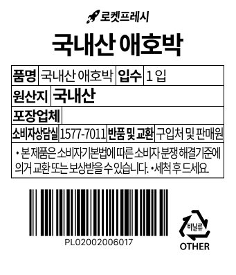 | 품목 또는 명칭 | 국내산 애호박 | 포장단위별 내용물의 용량(중량),수량,크기 | 1개입(200g) |