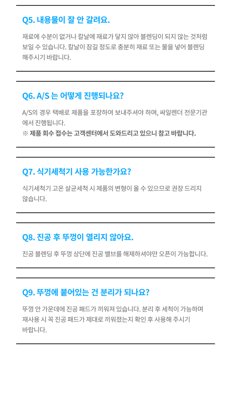 - 가격, 판매자, 교환/환불 및 배송 등 해당 상품 자체와 관련 없는 문의는 고객센터 내 1:1 문의하기를 이용해주세요.