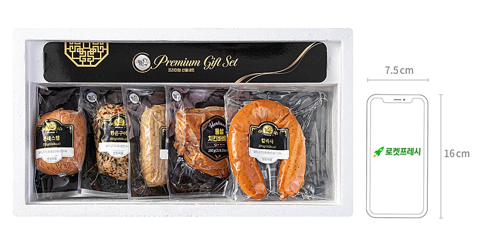 고소한 햄과 다양한 구성품을 담은 선물세트예요. 통살치킨바베큐, 불고기 너비아니 등으로 다채롭게 구성해 골라 먹는 재미가 쏠쏠하지요. 단정한 가방이 동봉되어 있으니, 소중한 분께 마음을 담은 선물을 전해보세요.