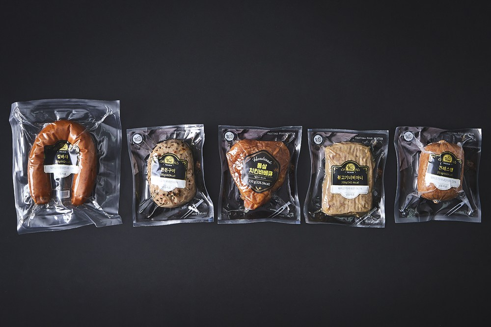 킬바사, 구이, 통살치킨바베큐, 불고기 너비아니, 본레스햄으로 구성되어 있습니다.