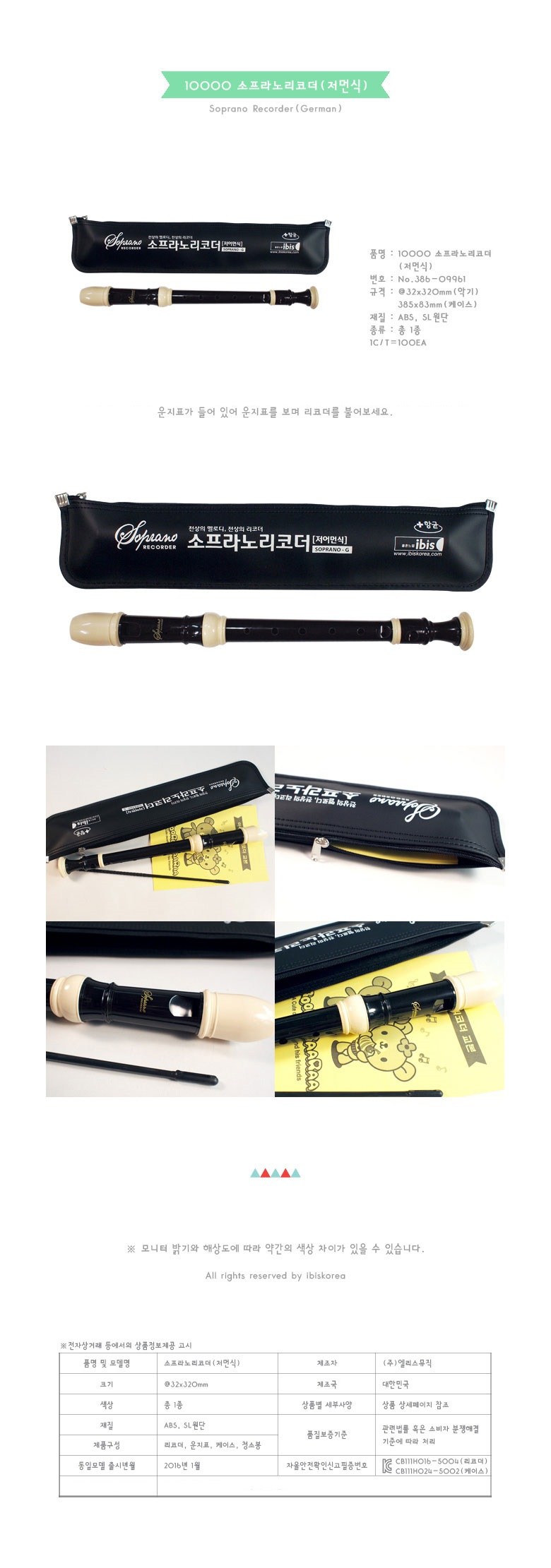 | 품명 및 모델명 | [아이비스] 10000 소프라노리코더(저먼식) / ER리코더 | KC 인증정보 | CB111H016-5004 (리코더) / CB111H024-5002 (케이스) |