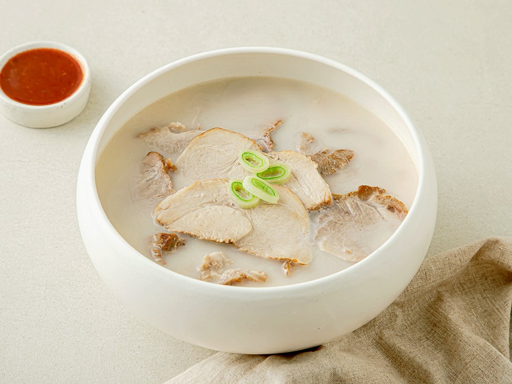 돔베고기는 부드러운 돼지고기 수육을 도마에 올린 제주의 향토 음식인데요. 오늘은 가정에서도 제주의 내음이 물씬 풍기는 돔베고기 국밥을 요리해 보세요. 뽀얀 국물이 매력적인 육수가 한층 더 깊은 맛을 선사한답니다. 간편하게 조리해 부드러운 돼지고기의 고소한 감칠맛을 느껴보세요.