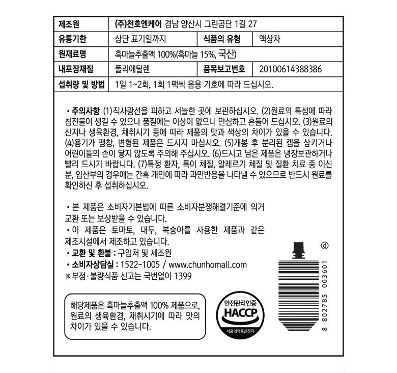 | 제품명 | 흑마늘 100 | 식품의 유형 | 상품 상세페이지 참조 |