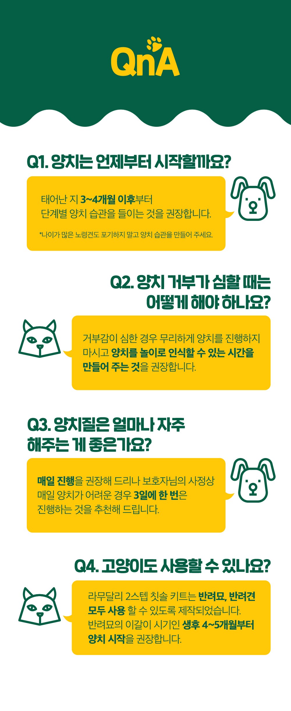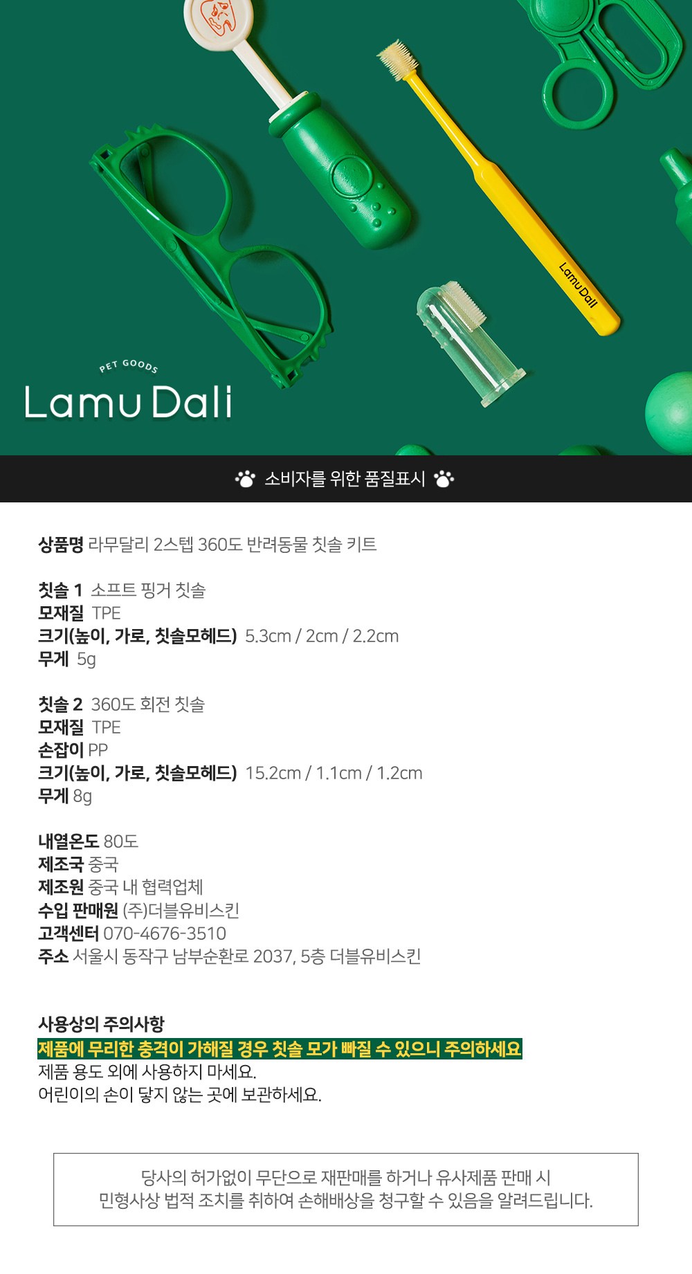 | 품명 및 모델명 | 반려동물 칫솔 키트 | 인증/허가 사항 | 해당없음 |