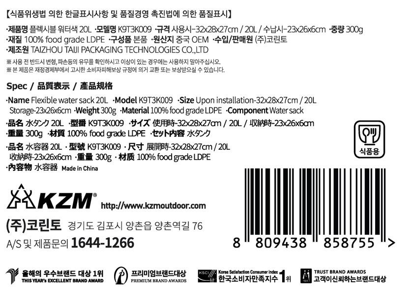 | 품명 및 모델명 | 플렉시블 워터색 20L / K9T3K009 | 재질 | 컨텐츠 참조 |