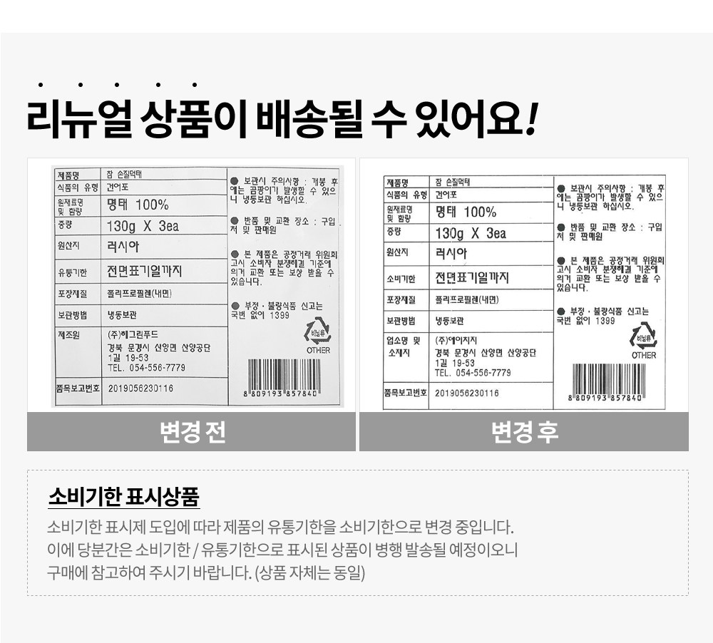| - 품질유지를 위해 구입 후 냉동 보관 권장 | |
