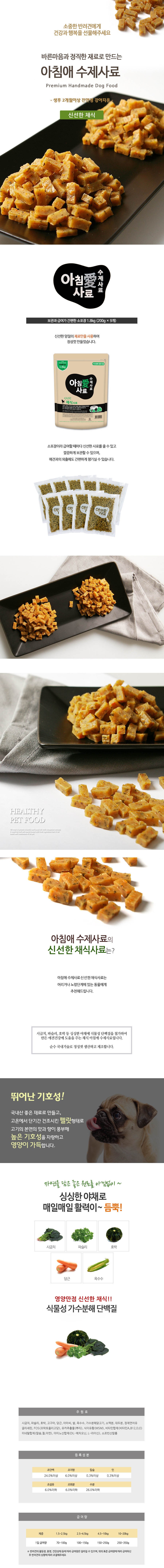 | 품명 및 모델명 | 아침애사료 신선한 채식사료 | 인증/허가 사항 | 사료관리법에 따른 성분등록번호 : 컨텐츠 참조 |