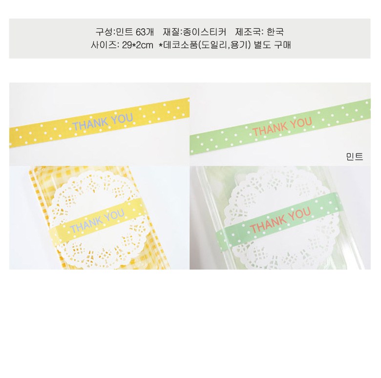 | 품명 및 모델명 | 스티커 땡땡이띠지-땡큐(민트) | 재질 | 컨텐츠 참조 |