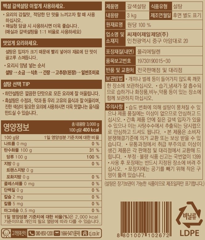 - 설탕 종류: 황/갈색설탕