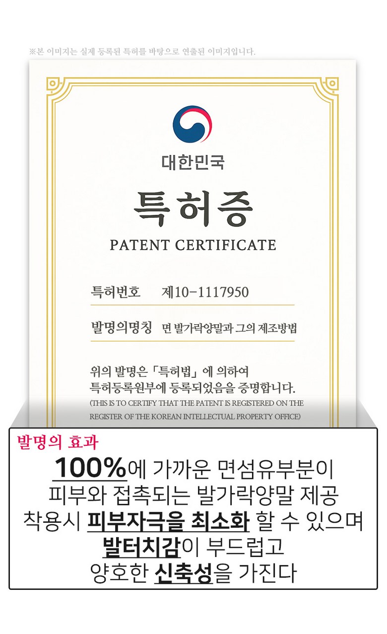 양말 속면은 특허기술을 기반으로 신축성있는 순면 원사로 제직,