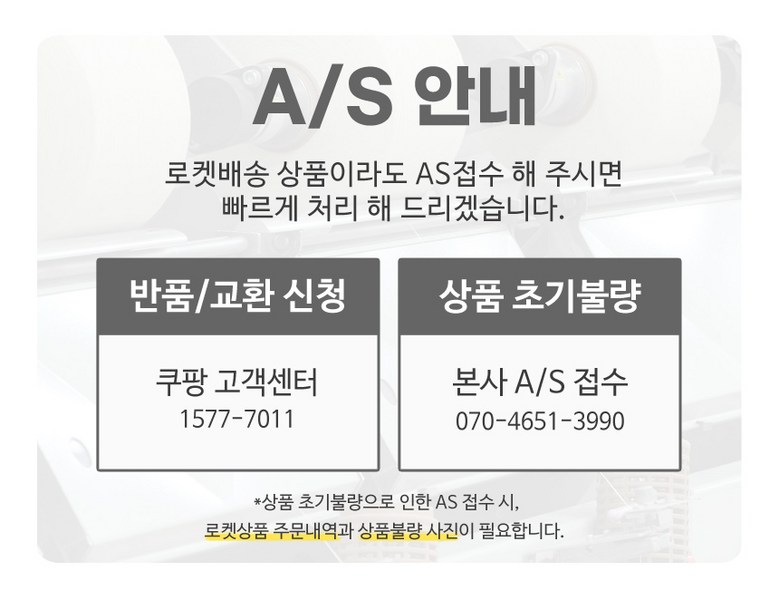 | 소비자상담 및 교환반품 문의 | 쿠팡고객센터 1577-7011 배송 및 환불/교환에 대한 문의는 마이쿠팡-고객센터 내 상담하기를 이용해주세요. | ||