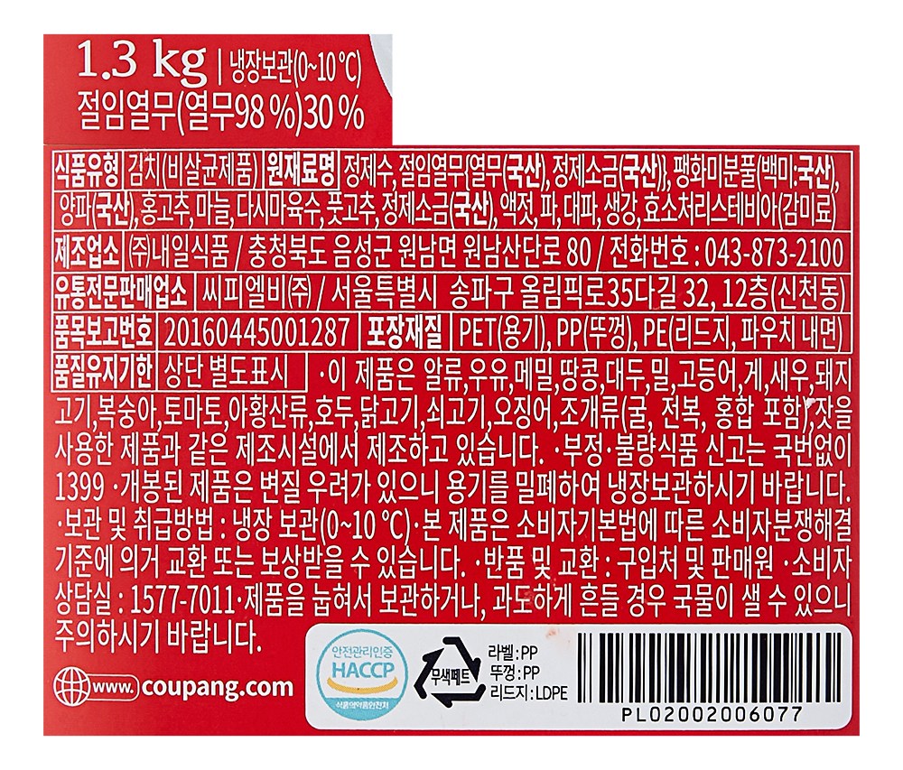 | 포장단위별 내용물의 용량(중량), 수량 | 1.3kg | 원재료명 및 함량 | 컨텐츠 참조 |